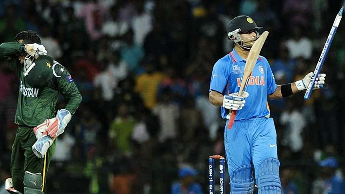 3. पांच साल बाद, दोनों टीमें 2012 में कोलंबो में एक-दूसरे से मिलीं। यह कम स्कोर वाली प्रतियोगिता थी जहां पाकिस्तान को 19.4 ओवर में 128 रन पर समेट दिया गया था। जवाब में, भारत ने गौतम गंभीर को डक के लिए खो दिया, लेकिन विराट कोहली (78) ने नाबाद अर्धशतक बनाकर टीम को तीन ओवर शेष रहते जीत दिलाई।