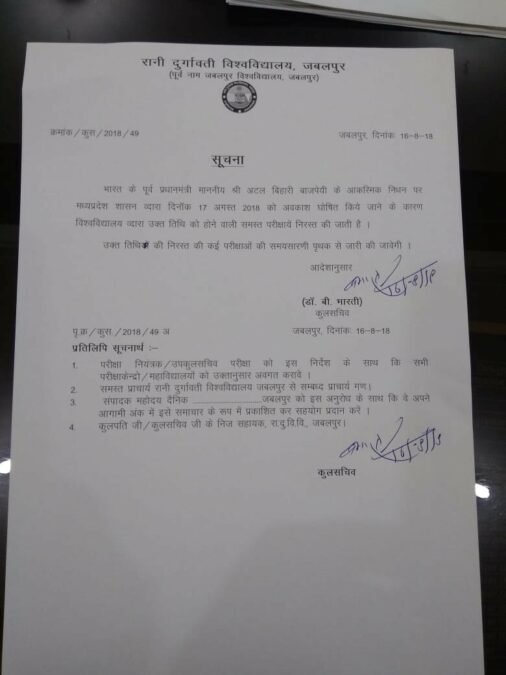 अनेक कार्यक्रम व परीक्षा हुई निरस्त