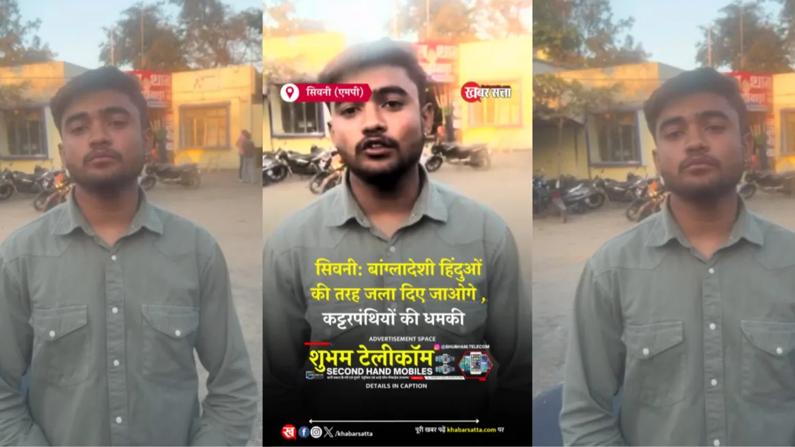 सिवनी धमकी मामला, देवराज साहू धमकी, बांग्लादेशी हिंदुओं की तरह जला देंगे, सिवनी वायरल वीडियो, कान्हीवाड़ा थाना खबर, सिवनी ब्रेकिंग न्यूज़, मध्यप्रदेश अपराध समाचार, युवक को जान से मारने की धमकी, सिवनी पुलिस एक्शन, कट्टरपंथियों की धमकी, MP Crime News,